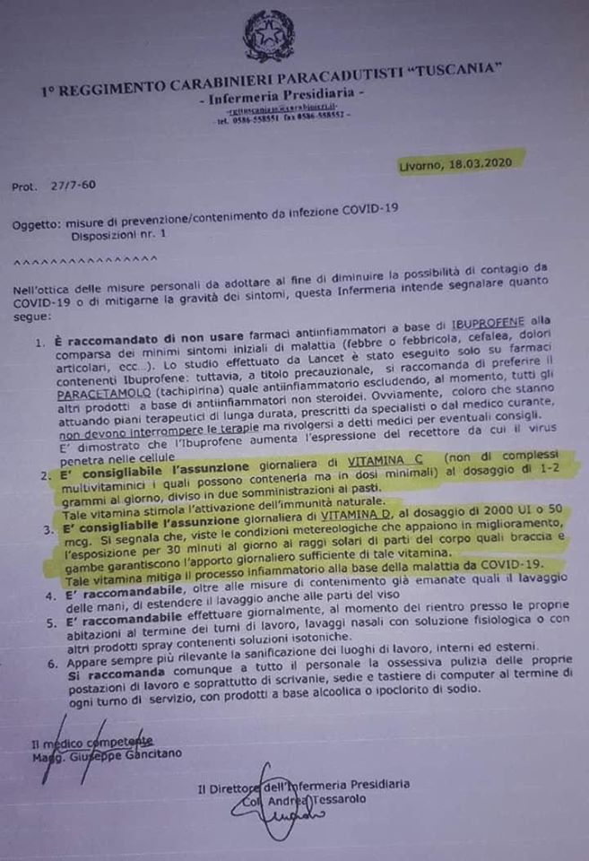 Sembra che ci sia chi ci prova davvero gusto a confezionare FAKE NEWS, adesso è la volta di un consiglio del 1° Reggimento dei Carabinieri Tuscania che consigliano l’assunzione di vitamina C e vitamina D per mitigare, addirittura, i sintomi da contagio da coronavirus – covid-19, ma è una circolare FALSA!