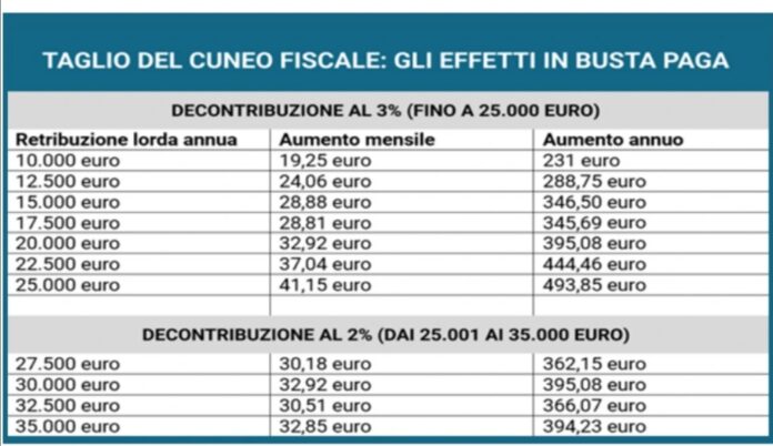 Per capire l’ammontare dell’aumento, è necessario raddoppiare la cifra che vediamo in busta paga espressa come aumento legato al precedente taglio del cuneo fiscale.