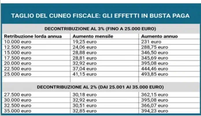 Maggio 2023, taglio del cuneo fiscale, le tabelle