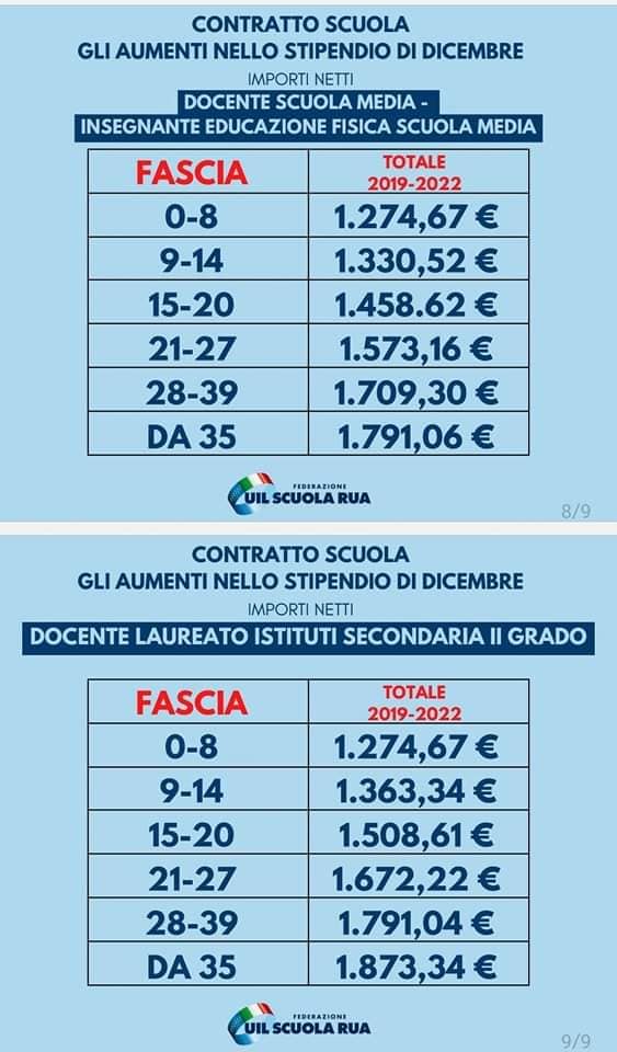 La Uil Scuola a dire il vero aveva messo già da tempo a disposizione di tutti sia gli importi al netto che quelli al lordo, pubblicando le tabelle.
