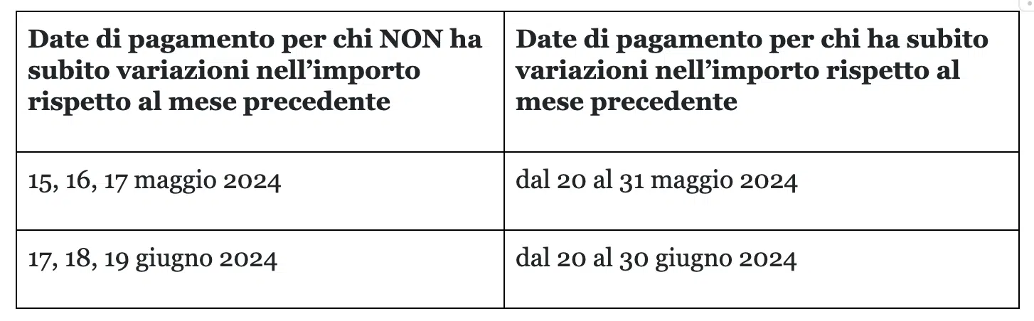 Eventuali arretrati saranno erogati insieme alla quota mensile, in un’unica soluzione nella data di pagamento prevista. Ad esempio, a maggio sia l’importo regolare che gli arretrati verranno accreditati dal 15 al 17 maggio in un unico versamento.