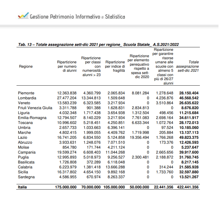 L’organico aggiuntivo per l’avvio dell’anno scolastico 2021/2022 è completamente finanziato dalle regioni e serve a garantire i posti di organico di diritto a quelle scuole che magari hanno avuto un passaggio di studenti da una scuola all’altra.