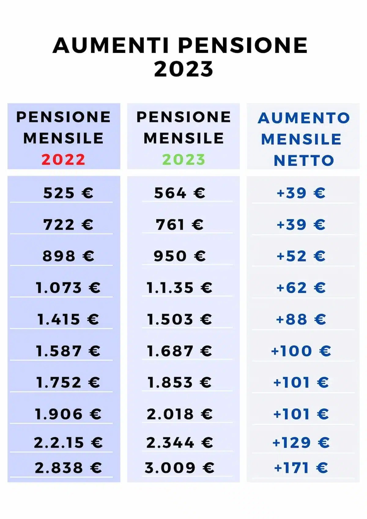 L’INPS ha pubblicato le tabelle con l’aumento al netto delle pensioni 2023, aumento che si troverà nel cedolino gennaio 2023.