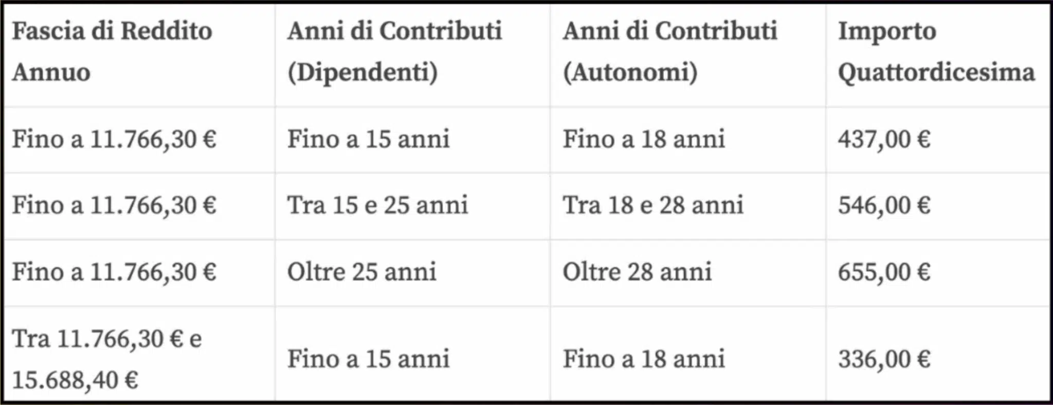 Tabelle pensioni luglio 2025, la quattordicesima INPS