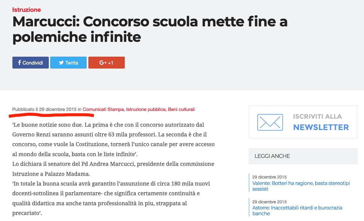 Mentre restiamo basiti nell’apprendere che propio uno degli scontenti delle procedure concorsuali sia proprio il senatore Marcucci del PD, lo stesso che esultava per l’approvazione della legge che portava in classe docenti preparati, esattamente in risposta a quanto chiedevano da anni le associazioni dei genitori e che proprio oggi Marcucci sembra essersene dimenticato. (leggasi il comunicato)