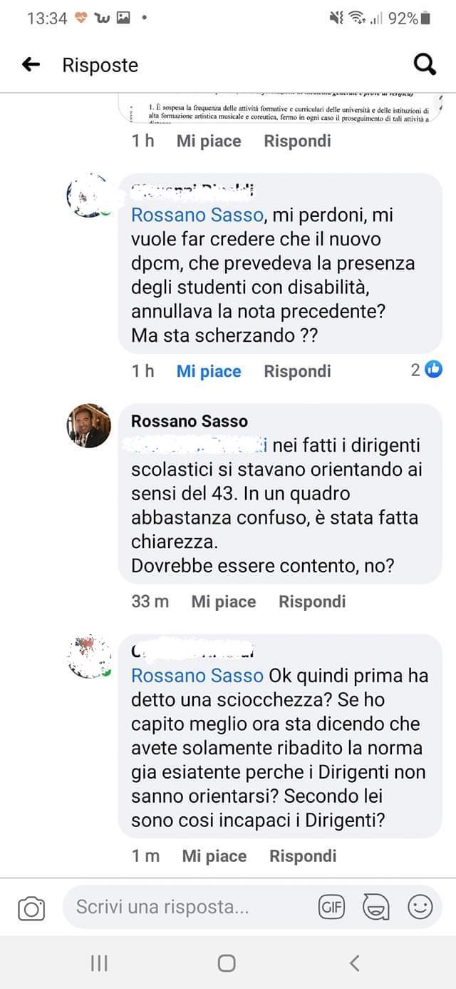 Questa volta ad ospitare un botta e risposta fra il sottosegretario Sasso e un utente è il gruppo del Mida Precari. L’oggetto del contendere è la nota relativa all’inclusione degli allievi più deboli, disabili DSA etc.