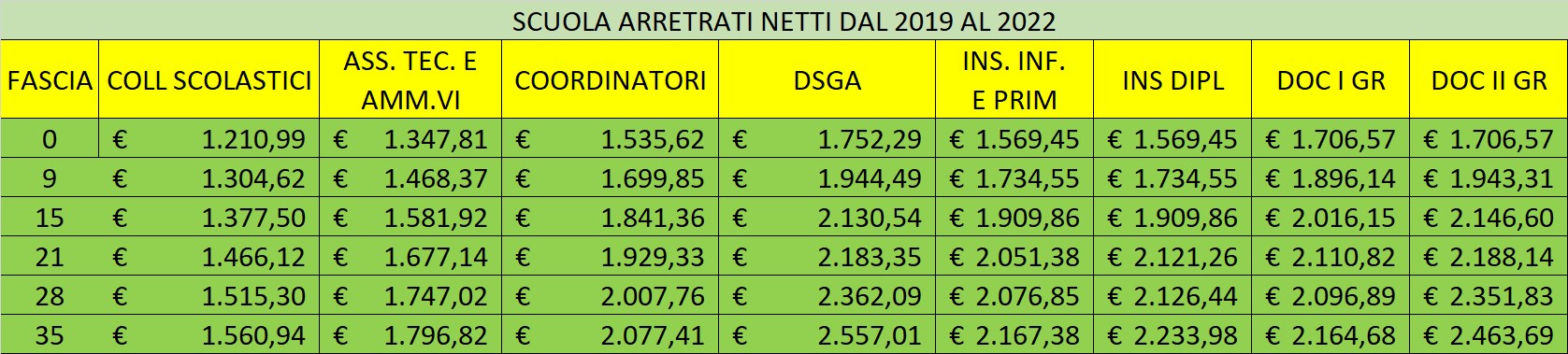 Come è noto gli arretrati saranno calcolati in base alla fascia stipendiale di appartenenza.