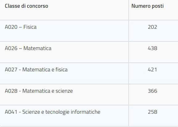 - Classe di concorso A-00 (Scienze matematiche, fisiche e naturali)