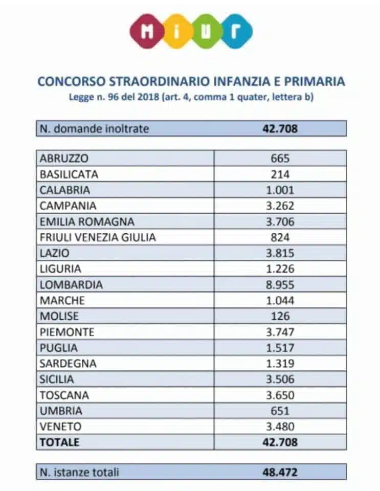Sono stati resi noti i numeri delle domande di partecipazione al concorso riservato per la scuola dell’Infanzia e Primaria del 2019.