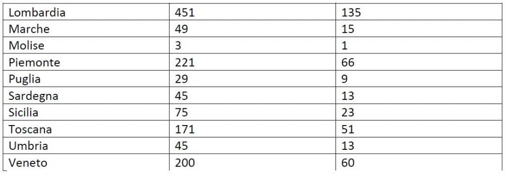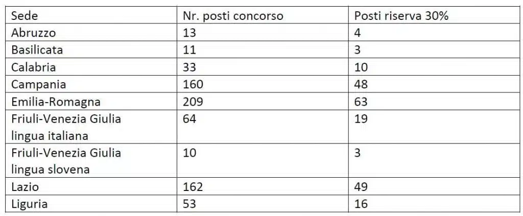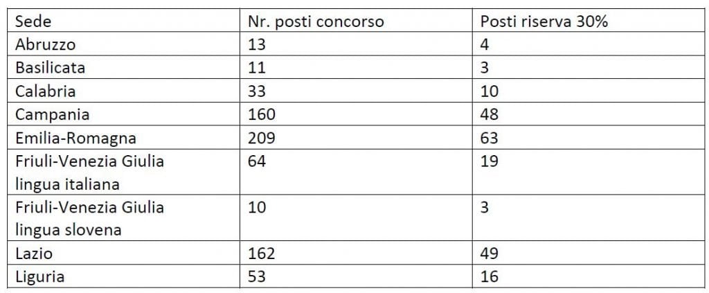 Posti messi a concorso suddivisi per regione e relativa riserva