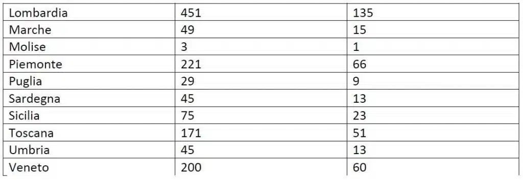 Le procedure concorsuali sono espletate a livello regionale per il numero di posti di seguito indicato. Si può presentare domanda per una sola regione, a pena di esclusione: