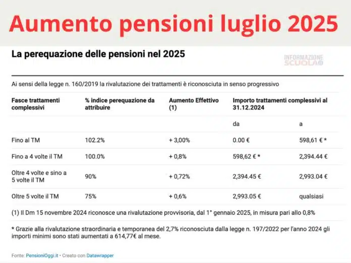 L’aumento delle pensioni INPS di luglio 2025 sono confermati dalle nuove tabelle in vigore dal 2025.