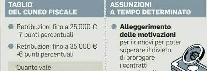 La prima fascia di reddito potrà contare sul taglio del cuneo fiscale fino a al 7%, la seconda fascia stipendiale invece fino al 6%.