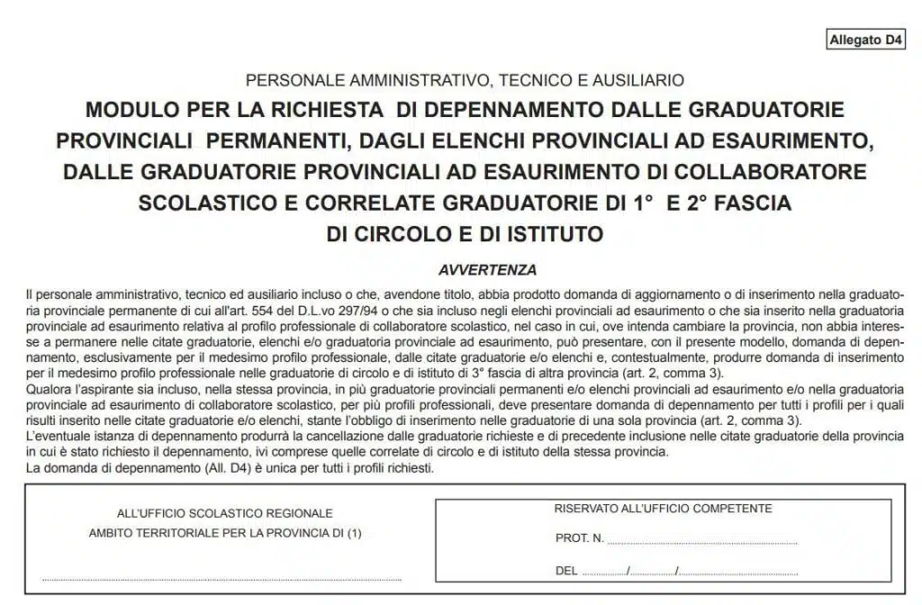 Depennamento dalle graduatorie ATA, ecco chi deve compilare il modello D4
