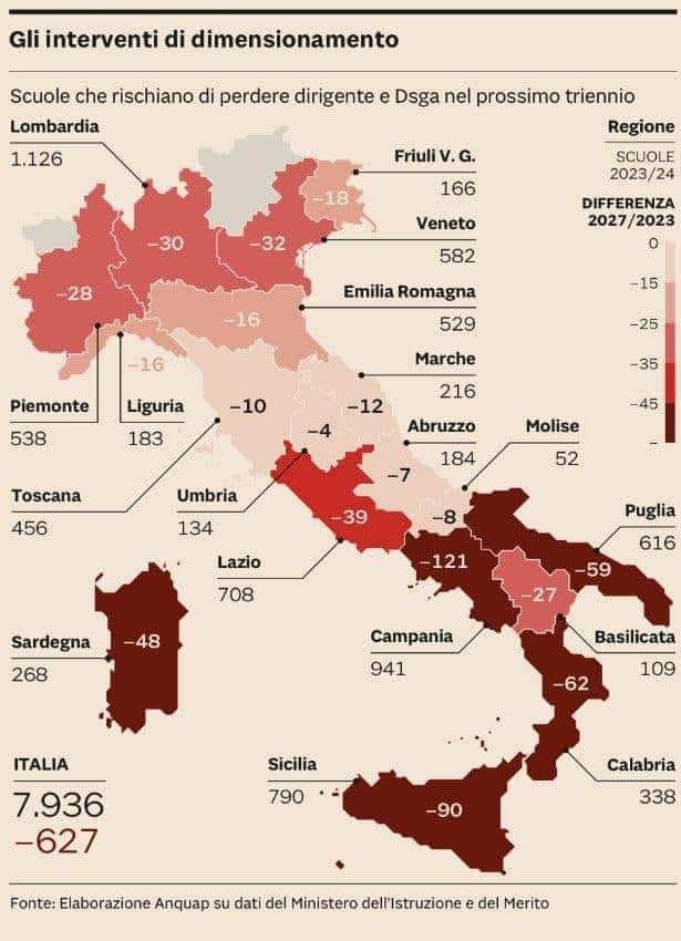 Il tanto temuto dimensionamento scolastico fortemente voluto da questo governo taglierà molte scuole. Si perderanno molti posti sia nelle segreterie scolastiche che nelle dirigenze, sia didattiche, dirigenti scolastici, che amministrativi, DSGA.