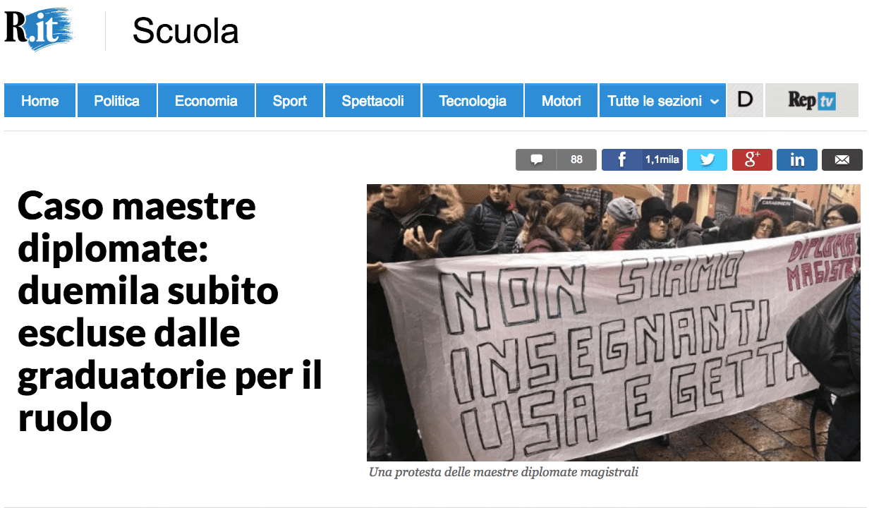 La questione dei diplomati magistrali escluse dalla GaE è su tutti i giornali