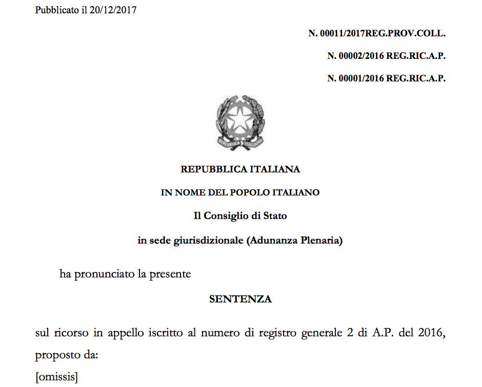 Visto che a nessuno sembra avere interesse a fare chiarezza, lo facciamo noi: quella della Plenaria è una normale sentenza d’appello che vincola i successivi giudicati esattamente come succede con le sentenze delle SS. UU. della Cassazione, naturalmente – chiariamo anche questo aspetto – si tratta di giustizia amministrativa che nulla a che fare con le sentenze dei giudici del lavoro.