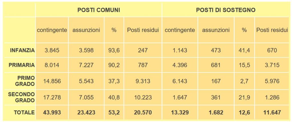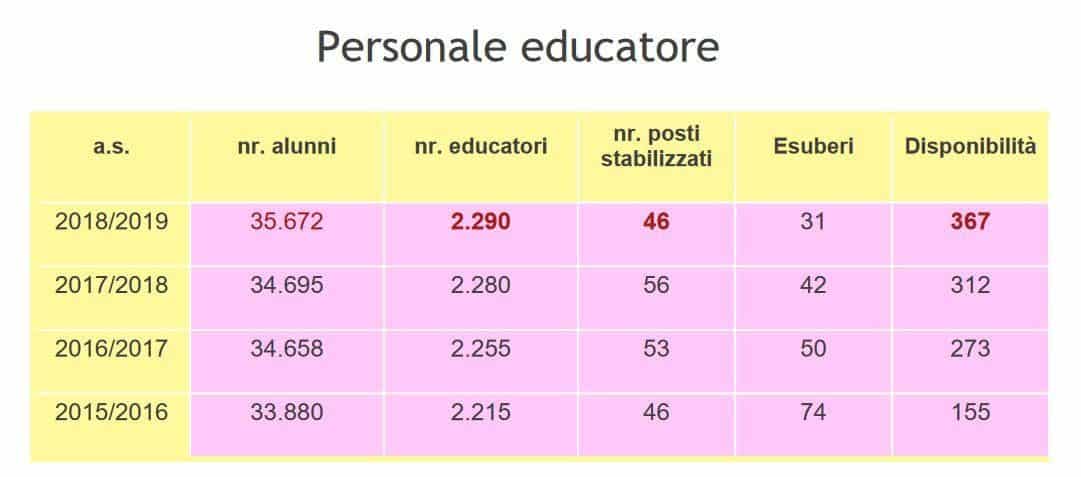 La tabella completa del personale educativo in servizio nelle scuole e nei convitti