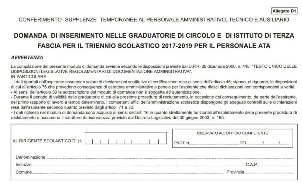 Iscrizione alle graduatorie ATA: Chi deve compilare il modello D1?