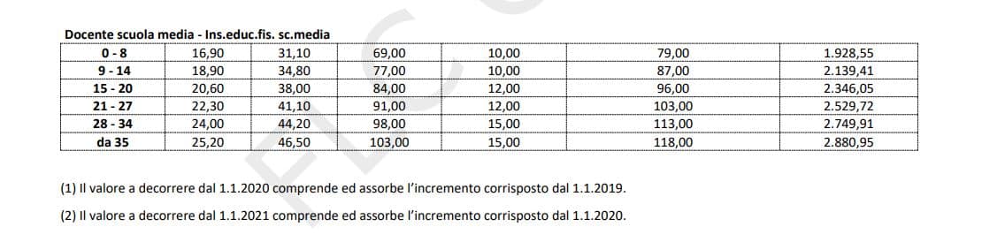 La tabella che segue riporta la nuova progressione stipendiale dei docenti della scuola di secondo grado di primo grado e dei docenti di Educazione Fisica.