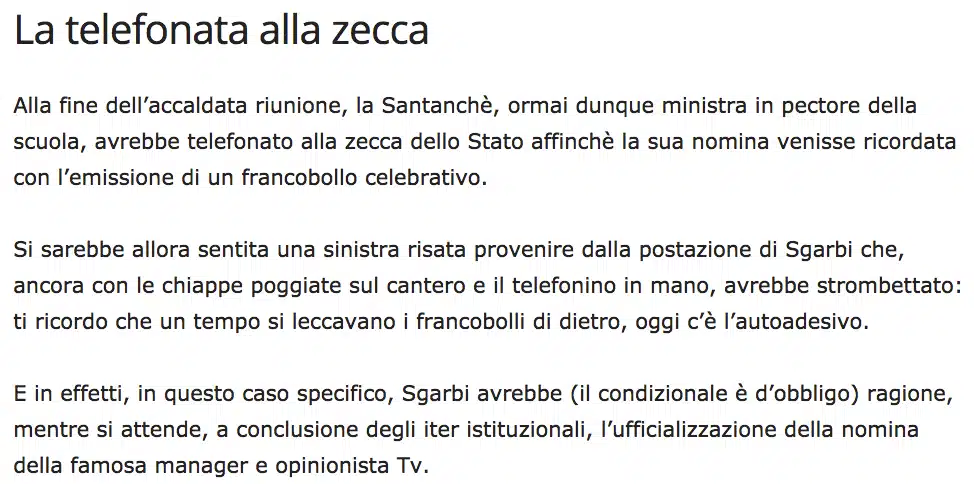 La testata giornalistica catanese nel riportare la notizia cita una non precisata fonte riservata che parla di un accordo tra la Lega di Matteo Salvini e il M5S di Luigi Di Maio che avrebbero individuato proprio nella Santanchè la persona giusta per guidare il MIUR e come prima azione politica restituirebbe l’aggettivo “pubblica” ritornato al vecchio ed amato “Ministero della pubblica istruzione”. Tuttavia la Tecnica della Scuola precisa che il condizionale è d’obbligo, così come potete leggere voi stessi in un stralcio dell’articolo.