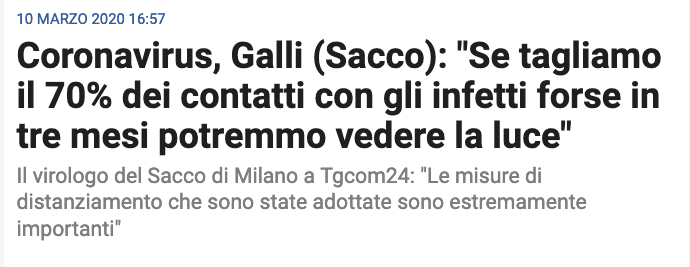 Il virologo cita: “Uno studio pubblicato proprio oggi sottolinea che se non riusciamo a identificare almeno il 70 per cento dei contatti delle persone che sono state infettate – e di conseguenza non riusciamo a isolarle per evitare che ci siano ulteriori infezioni – e se non riusciamo anche a contenere in maniera corretta il periodo di ‘convalescenza’ delle persone che non necessitano di venire in ospedale ma l’infezione ce l’hanno, ci scordiamo di chiudere la storia entro tre mesi almeno”.