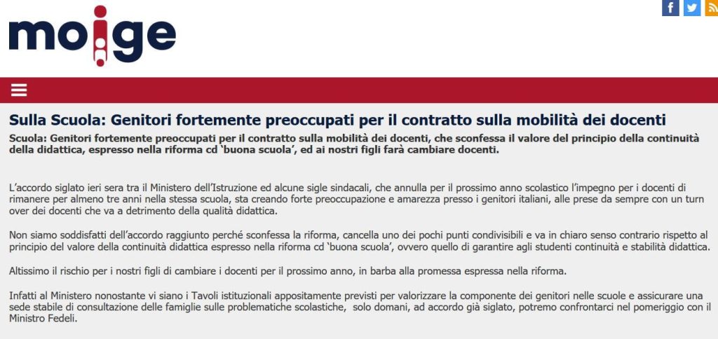 Percentuali che comunque preoccupano l’associazione dei genitori MoiGe che temono il crollo definitivo della continuità didattica, l’associazione ha affidato le proprie preoccupazioni ad un comunicato stampa che riportiamo qui di seguito: