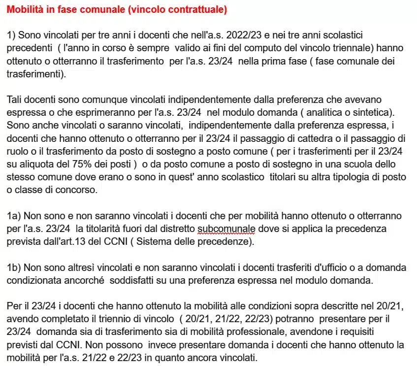 Mobilità 23/24 chi può fare domanda e chi no perché è vincolato