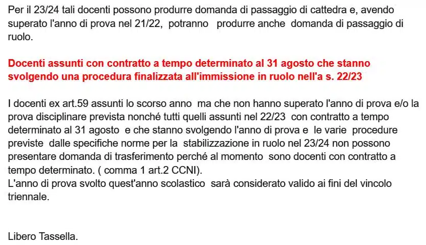 Prosegue lo speciale mobilità 2023/24 a cura di Libero Tassella.