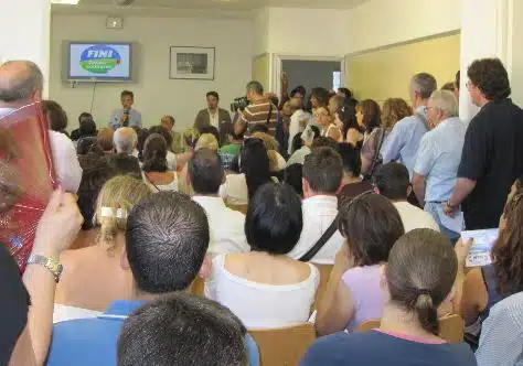 Successo della manifestazione promossa dal prof. Giorgio Mottola, del FLI, che ha visto la partecipazione degli onorevoli Granata e Muro. L’Aula Nugnes del Palazzo del Consiglio Comunale di Napoli era gremita di precari che per l’occasione sono arrivati da tutta Italia. I precari, in possesso dei 360 giorni di servizio, rivendicano la possibilità di abilitarsi all’insegnamento, passaggio fondamentale per sperare poi nell’immissione in ruolo.