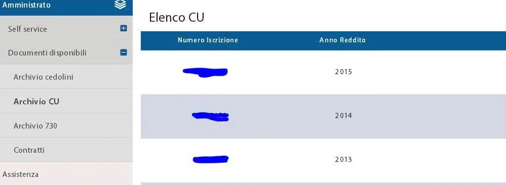 Se vi collegate noterete che sono presenti i CUD degli anni precedenti, ma non è ancora visibile il CUD del 2016.