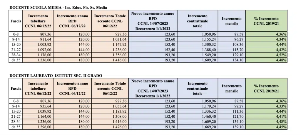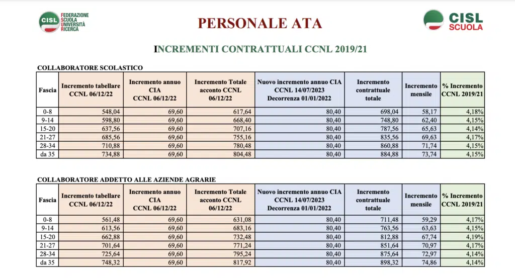 La CISL Scuola fornisce i dettagli in chiare tabelle sia del personale docente che del personale ATA.
