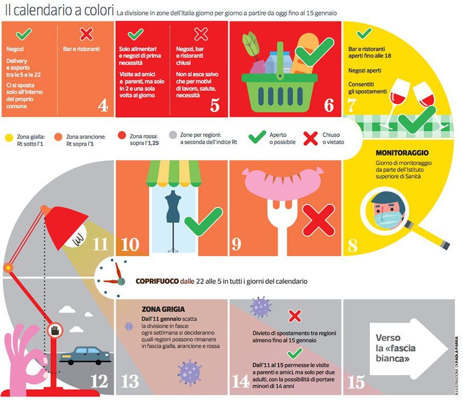 Arriva il lnuovo DPCM che introduce anche la zona bianca, ma cosa devono sapere gli italiani, quando possono uscire dal proprio comune e quando invece no? Il Corriere della Sera ha predisposto uno specchietto che ci permette di muoverci nei vari colori introdotti dal nuovo DPCM.