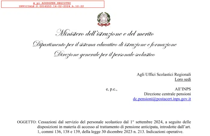 Il MI ha pubblicato una circolare che riapre i termini per presentare domanda di pensionamento con decorrenza 1 settembre 2024 tramite “Opzione Donna” e “Pensione anticipata flessibile”.