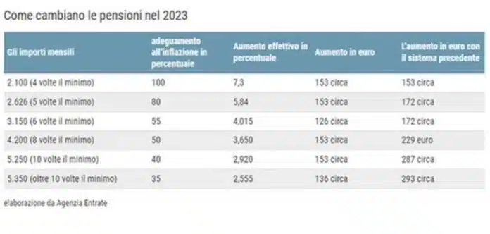 Secondo le ultime notizie, l’aumento delle pensioni per il 2023 dovrebbe essere calcolato sulla base dell’inflazione programmata, ovvero dell’aumento previsto dei prezzi al consumo. In particolare, l’aumento dovrebbe essere pari all’80% dell’inflazione programmata, con un minimo garantito di 80 euro al mese per le pensioni fino a 1.500 euro e di 100 euro al mese per quelle superiori.