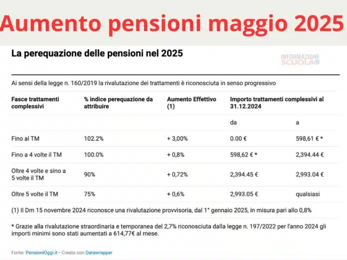 La tabella INPS allegata evidenzia i nuovi importi e gli aumenti di maggio 2025