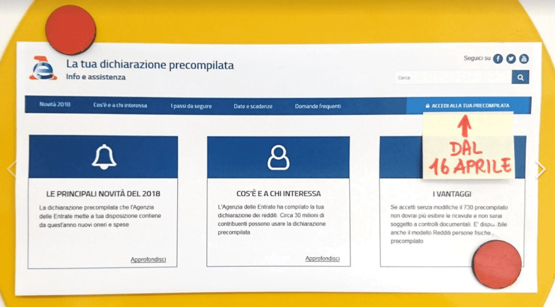 Anche quest’anno, tutte le informazioni utili sulla dichiarazione precompilata, dalle novità alle Faq, passando per guide e scadenze, le trovate sul nostro sito dedicato: https://infoprecompilata.agenziaentrate.gov.it”