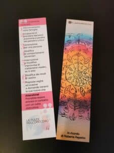 Il segnalibro, che ha il vantaggio di essere facilmente consultabile per le sue ridotte dimensioni, ha quindi un duplice obiettivo: sensibilizzare sulla realtà settaria e veicolare un messaggio di speranza e bellezza, grazie all’acquerello realizzato da mia sorella, cosi colorato e vivace.