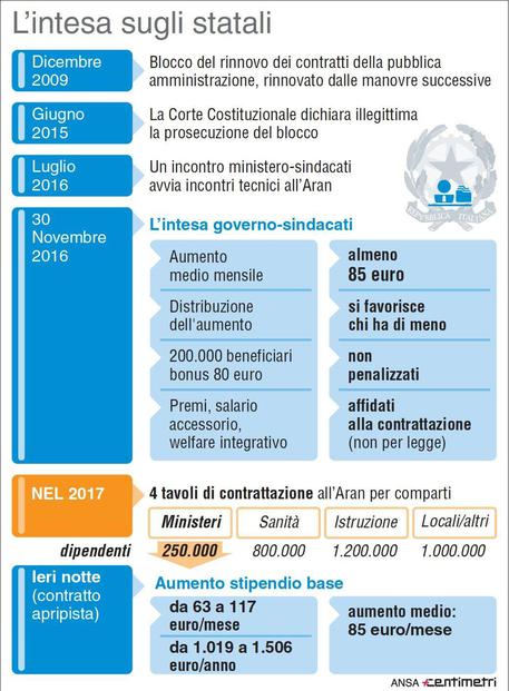 Pubblichiamo l'infografica dell'ANSA sul rinnovo del contratto degli statali