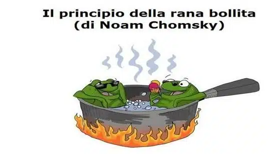Se metti una rana in una pentola piena di acqua bollente, la rana schizza fuori immediatamente; se la metti in una pentola piena di acqua fredda e piano piano alzi la temperatura, la rana si adatta progressivamente al calore e, quando l’acqua diventa bollente, non ha più la forza di reagire e muore.