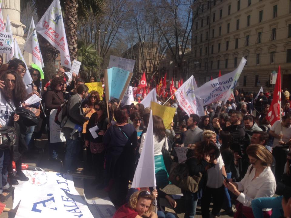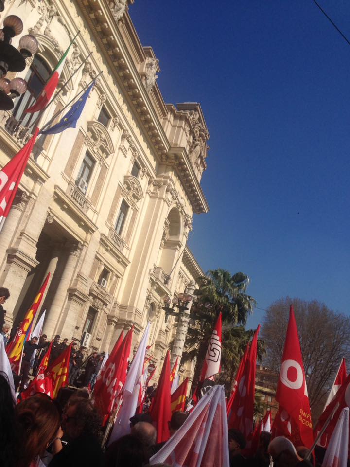 Grande adesione allo sciopero indetto dai sindacati di base (Cobas, Unicobas, Usb ecc.), in questo momento i manifestanti sono davanti al MIUR e stanno parlando i leader dei sindacati.
