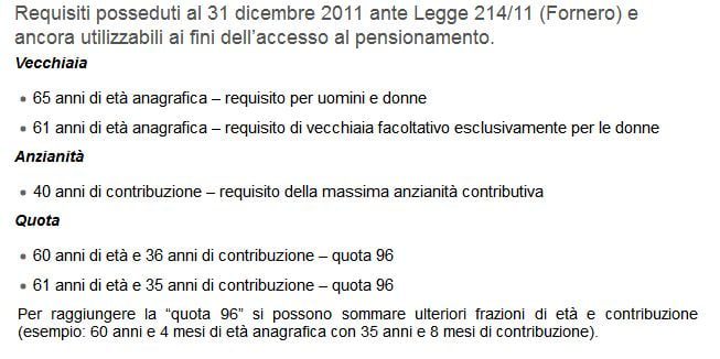 Nuove regole per l’accesso alla pensione previste dalla Legge 214/11