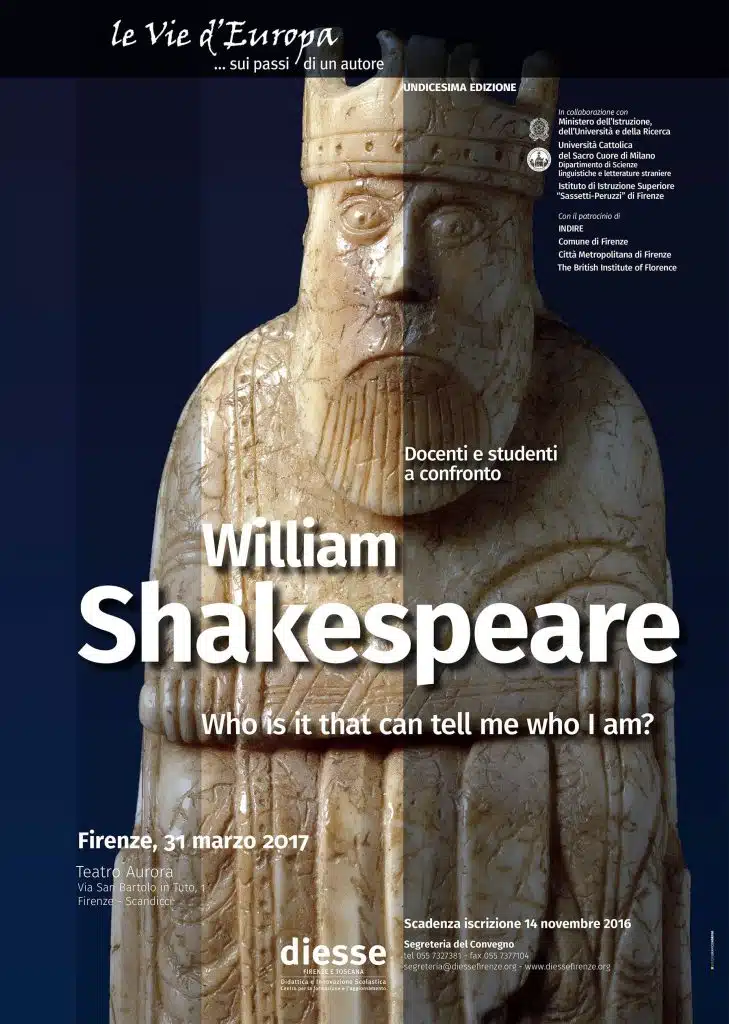È dedicata al maggiore drammaturgo europeo l’XI edizione de Le Vie d’Europa, il convegno concorso ideato e organizzato dall’associazione Diesse Firenze e Toscana – Didattica e Innovazione scolastica, che si terrà venerdì 31 marzo 2017, a partire dalle ore 9.30 al Teatro Aurora di Scandicci.